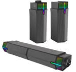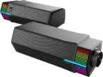 With its minimalist design, the GS511 Wireless Speaker fits effortlessly into any setup. Its compact size allows it to sit neatly under your monitor, while the adjustable RGB lighting adds a modern touch to your space. The two-in-one design offers versatility, easily switching between desktop and TV configurations.