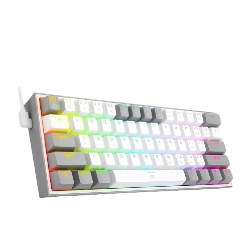 Experience the REDRAGON K617 FIZZ 60% RGB Gaming Keyboard, featuring a sleek 61-key layout with vibrant 2-color keycaps. Its compact design maximizes desk space while adding a pop of color to your setup, perfect for gamers looking for style and functionality.